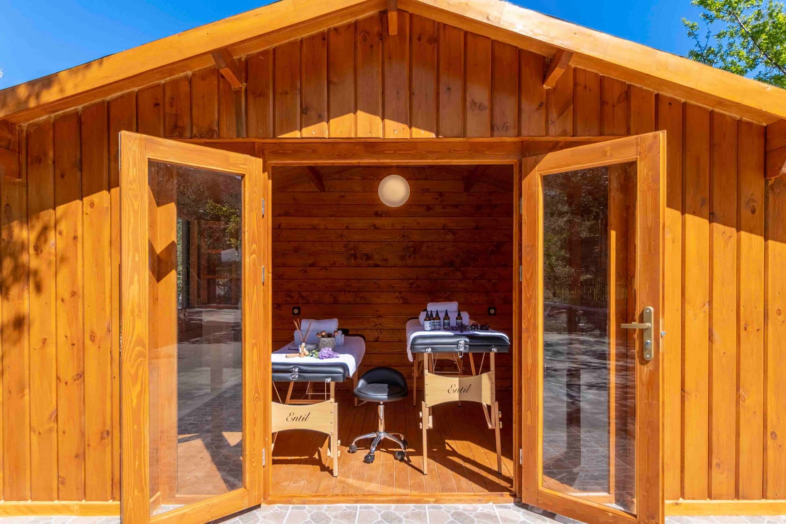 We’ve created this massage hut as a retreat within a retreat. The outside world fades away, and you can truly relax. Whether you seek relief from stress, a moment of peace, or simply being cared for, this your place.