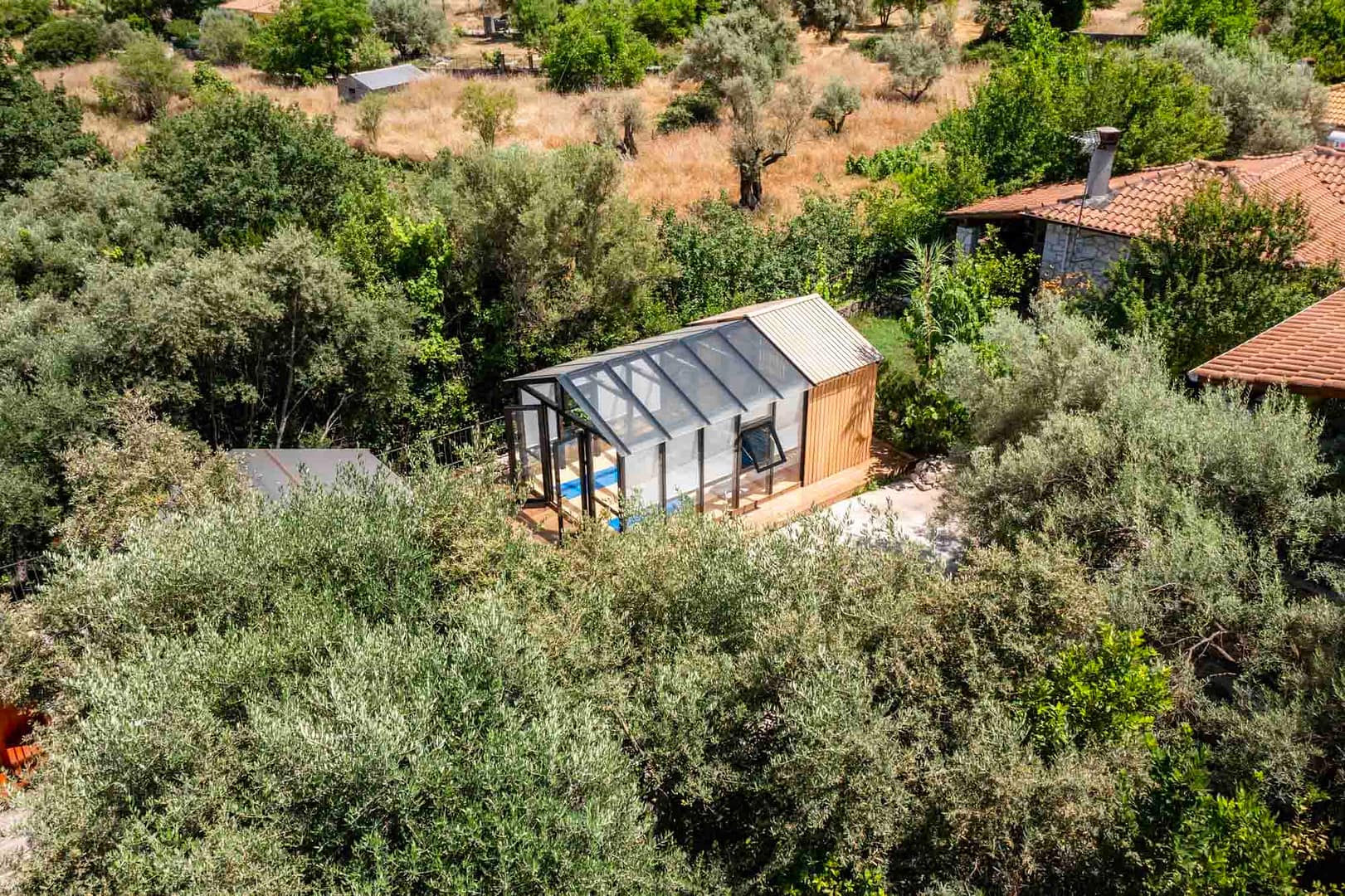 The glass walls harness the sun heat and creates a cosy environment with natural views of the green scenery around our place. Ideal for autumn-winter-spring days. With or without rain.
