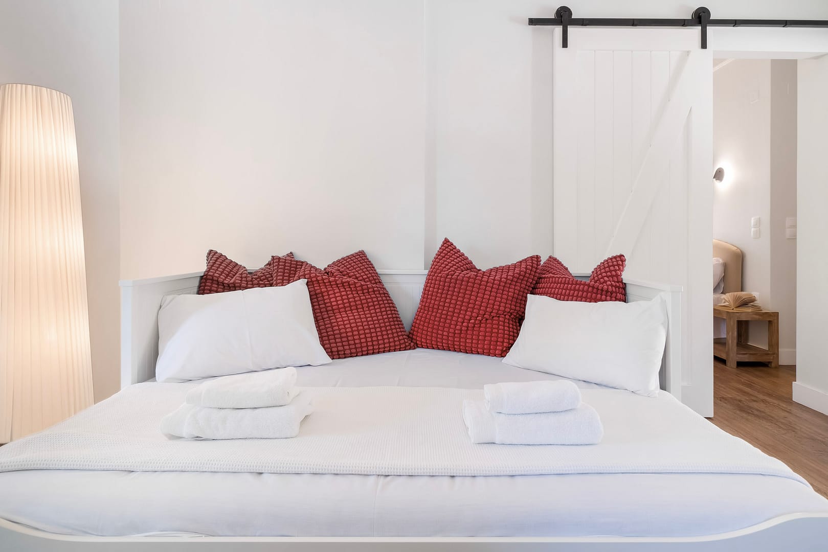 Lastly, our Zen Villa is a one-bedroom stone villa on two levels with a larger surface of 120 sqm and 3 large balconies/terraces.